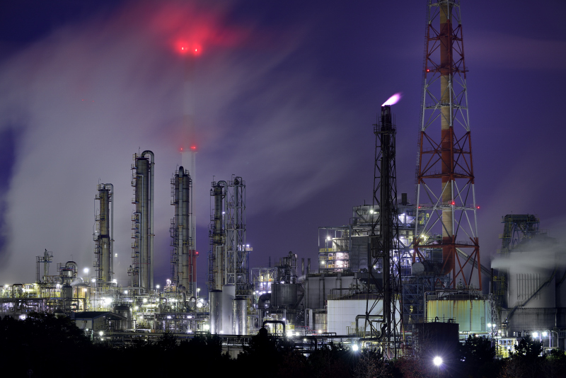 蒸気がモクモクと上がる工場からは強いエネルギーを感じ、なんだかワクワクする。モクモクにワクワクだ。その様が最も盛り上がるのは、厳冬の夜。闇夜には白い蒸気がよく映える。シャッターを長く開けて撮影すると、蒸気は流れるように表現され、そこにプラントの影や、灯りが投影されると幻想感も増す。撮影ポイントは姫路市網干区なぎさ公園から見える工場。