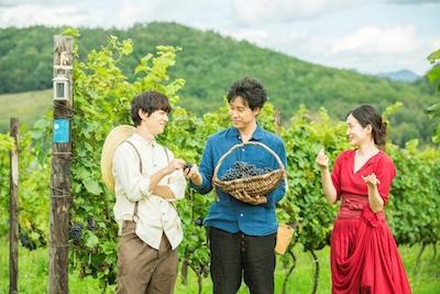 監督の言葉を読む限り、多分に図式的だったので、オールロケで撮る映像のリアリティと合わないのではないかと心配していたのだが、彼の地のぶどう畑はそもそも日本というより欧州のようで、しかも物語展開や演技、そして衣装も音楽の挟み方も、これはもう寓話なのだと誰もが受容する演出で、やはり空知でないとなどと、こちらは行ったこともないくせに妙に納得してしまうのである。雪解けによって土地に蓄えられた水は、それを存分に吸い上げた葡萄の木の枝から涙のように滴り、ワインを造る人々の頭上からは雨が降る。寓話には教訓がつきものだが、こうした大きな循環の中に我々の生の営みがあることを映像的な叙情たっぷりに教えてくれる作品だ。観終われば自然とワインが飲みたくなるのは、映画の出来が良いことの証だろう。