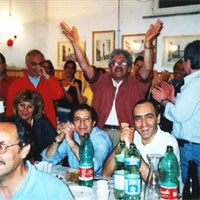 ローマ近郊にアリッチャという小さな町がある。通称、豚の町。この何ともいたたまれないあだ名は、地元の名物料理「子豚の丸焼き」に由来している。週末の夜ともなると、「豚を食わせろ」と大挙して訪れるローマっ子たちでごった返すという。僕も行ってみることにした。子豚を出す店が立ち並ぶ目的地に辿りつくと、ただちに仰天した。正確には、耳が仰天したのだ。聴覚的カオスとでも言おうか、辺り一面音の洪水なのである。どこの店も屋外に長テーブルを配したものすごいせり出し方をしていて、そこに陣取った客たちが猛然と飲食し、歌を披露しているのだ。たとえば僕の前にいた20名ほどの団体は何やら一組のカップルを祝福している様子で、陽気な歌をひっきりなしに合唱している。そのお隣ではひとつの節回しを何度も繰り返しながら、ひとりずつ即興で歌詞を付けつつ歌っている。誰かを褒めたりはやしたり、猥雑な冗談を織り交ぜたり、それはそれは楽しそうだ。彼らにとっての歌は聞くものではなく、あくまでも参加するものである。うまい料理と酒があって、のりのいい歌がある。素朴ではあるけれど、彼らはその瞬間、生を確実に謳歌している。僕にはそう思えた。